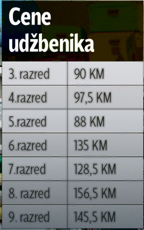 Samo za udžbenike osnovaca treba izdvojiti od 90 KM, koliko košta komplet knjiga za treći razred, do 145 KM za komplet udžbenika za deveti razred. Za prvi i drugi razred Vlada RS je do sad obezbjeđivala besplatne udžbenike.