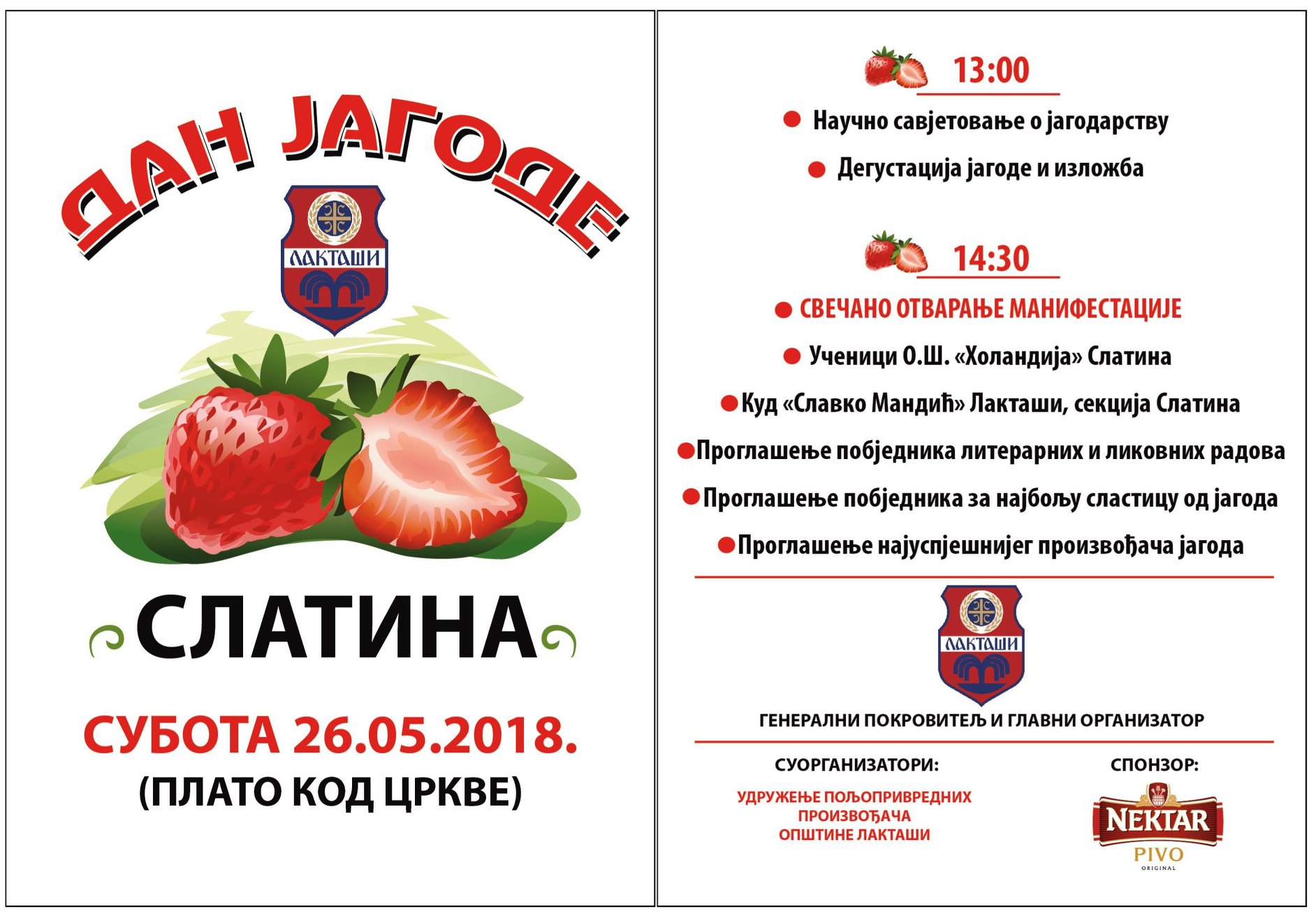 Ne zaboravite, sutra je Slatina centar Laktaša. Pred nama je DAN JAGODE 25.05.2018. 0 Facebook Email Print Viber LAKTAŠI, 25. maja – Ne zaboravite, sutra je Slatina centar Laktaša. Aktuelnosti Odbijanje alkotesta skupo ga koštalo: Lišen slobode u Laktašima 16.04.2026. Udes na brzoj cesti Laktaši-Banjaluka: Auto udario u betonsku ogradu, stvaraju... 16.04.2026. Парох трнски Александар Павичар: У шта су се претвориле сахране у... 16.04.2026. Laktaši: Večeras otvaranje izložbe ”Sjećanje na junake iz moje ulice” 16.04.2026. LAKTAŠI: SUTRA VELIKA PROLJETNA AKCIJA DARIVANJA KRVI 16.04.2026. Najčitanije U udesu teško povrijeđen vozač motocikla iz Laktaša 09.04.2026. Metalni opiljci “pljuštali” na brzoj cesti Banjaluka – Laktaši 09.04.2026. LAKTAŠI: OBILJEŽEN DAN ŠKOLE ”MLADEN STOJANOVIĆ” 08.04.2026. Miroslav Bojić otvoreno o tome šta bi promijenio u Laktašima i... 07.04.2026. Laktaši: Proljetna akcija darivanja krvi 07.04.2026. Najviše komentara Majka srpskog Eskobara iz Laktaša uhašpena u Srbiji 03.03.2026. Nesreća u Aleksandrovcu: Automobil prepolovljen 17.02.2026. Nataša Kovačević: Da li je vrijeme da se promijene običaji na... 11.02.2026. Fizički nasrnuo na ženu iz Laktaša, pa uhapšen 09.12.2025. Bojić: Rekonstrukcija trga kod Doma kulture i Gradske uprave, širi se... 27.11.2025.