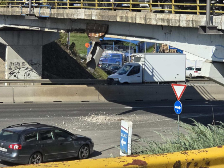 Kako javljaju čitaoci, ovaj nadvožnjak je u jako lošem stanju, te kako se vidi sa fotografije počeli su otpadati komadi betona.
