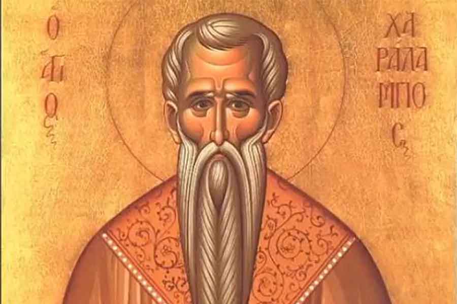 “Kada nasta strašno gonjenje hrišćana u vrijeme cara Septimija Severa, starac Haralampije ne krijaše se od gonitelja, nego slobodno i javno propovijedaše vjeru Hristovu. Sve muke pretrpe kao u tuđem tijelu. A kad s njega živa kožu odraše, nezlobivi svetac reče carskim vojnicima: “Hvala vam, braćo, za to što ostrugavši moje staro tijelo, vi obnoviste duh moj za novi, vječni život.