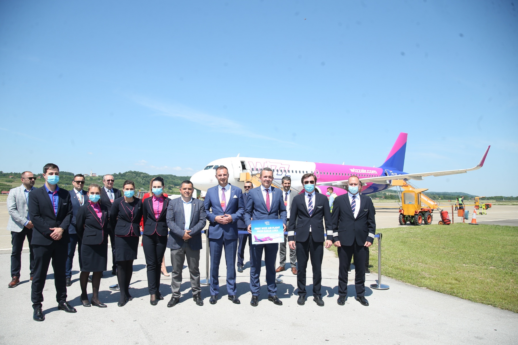 Prije povratka za Dortmund, posada na čelu sa kapetanom se uslikala sa rukovodstvom banjalučkog aerodroma.