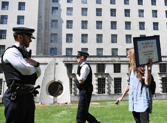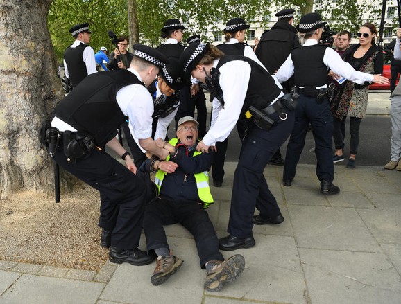 LONDON, 03.maja – Jedan čovek je uhapšen nakon što je učestvovao u grupnom zagrljaju ispred sedišta londonske policije, u znak protesta protiv mera zatvaranja zbog epidemije korona virusa.